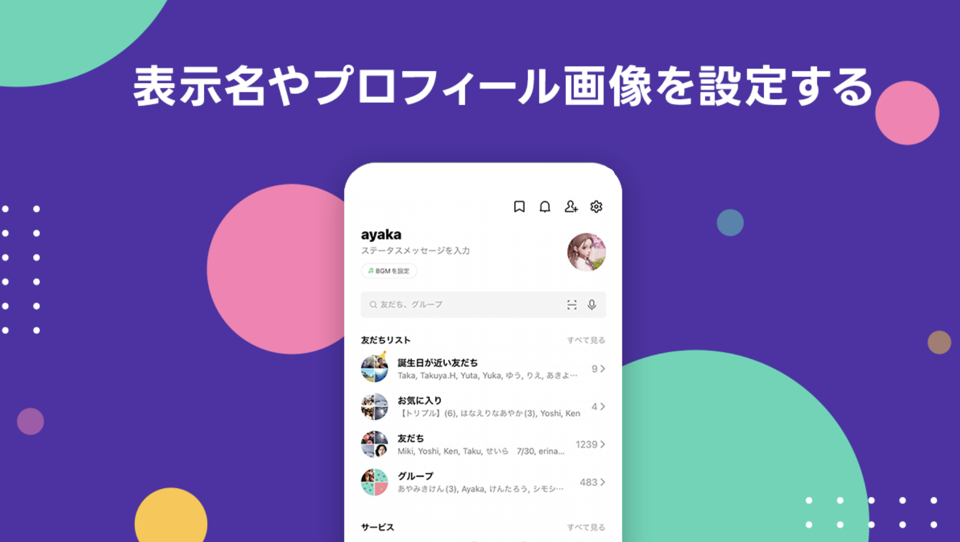 表示名やプロフィール画像を設定する